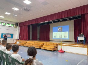 Στις 14/11/23 επισκέφτηκαν το σχολείο ο κύριος Αιμίλιος Ιωάννου και η κυρία Εβελίνα Θεμιστοκλέους από το Τμήμα Αναπτύξεώς Υδάτων. Μίλησαν στα παιδιά των Δ´ τάξεων στα πλαίσια της ενότητας των Ελληνικών «Ρώτα το νερό … τι τρέχει» για τη σημαντικότητα του νερού στη ζωή μας.