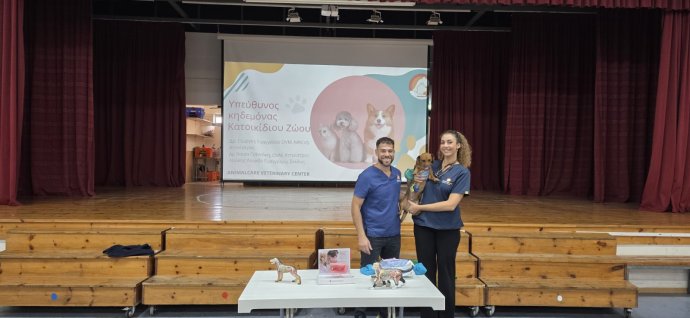 Ο κτηνίατρος, Δρ. Γιώργος Ευαγγέλου, ήρθε στο σχολείο μας να μας μιλήσει για το πώς να γίνουμε υπεύθυνοι κηδεμόνες των κατοικίδιων ζώων μας εν όψει και της παγκόσμιας ημέρας των ζώων που είναι στις 4 Οκτωβρίου. Μια διεθνής ημέρα δράσης για την ευαισθητοποιηση σχετικά με τα δικαιώματα των ζώων. Την παρουσίαση παρακολούθησαν τα παιδιά των Δ' τάξεων.